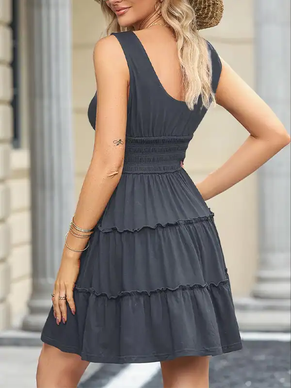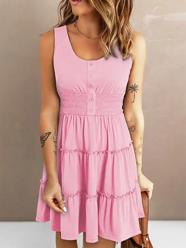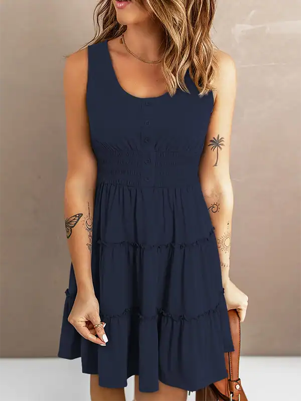 Custom Casual Summer Dresses Manufacturer | Smocked Empire Waist Sleeveless Button Down Mini Dress