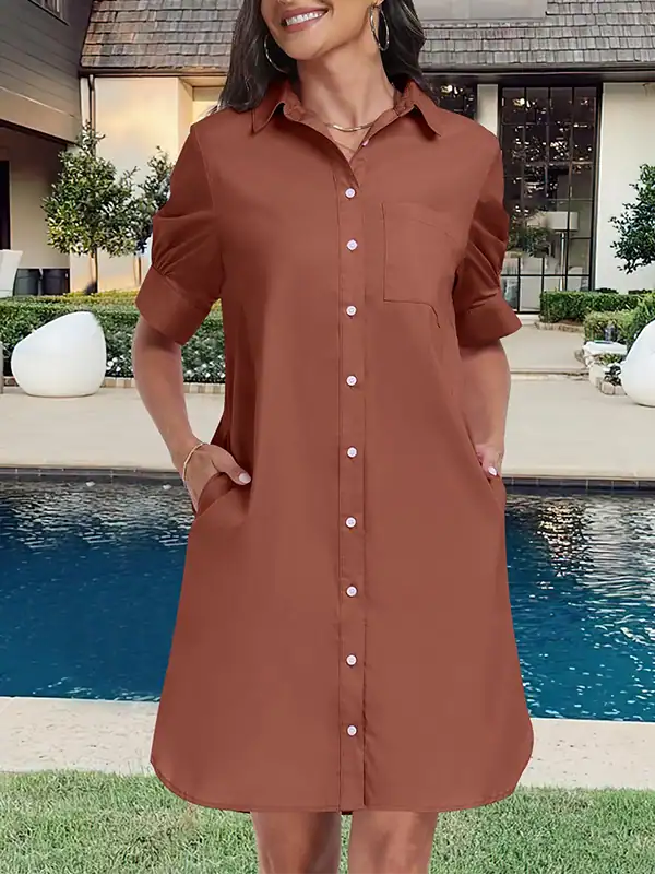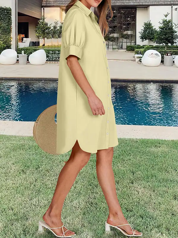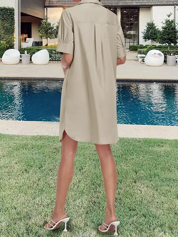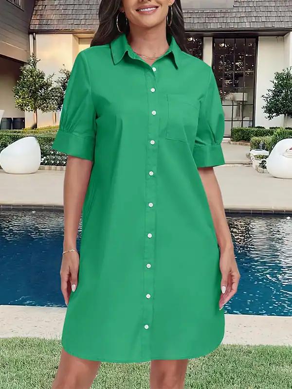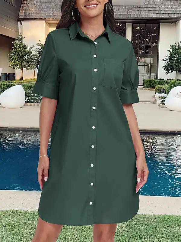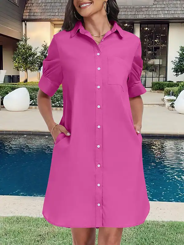 Custom Women’s Button Down Shirt Dresses Manufacturer | OEM/ODM Summer Short Sleeve Business Casual Shift Dress with Pockets Supplier