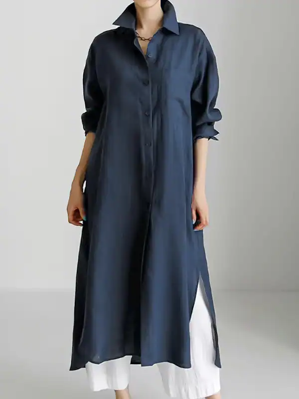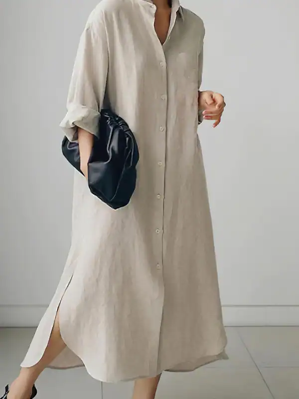 Custom Women’s Cotton Shirt Dresses Manufacturer | OEM/ODM Spring Summer Flowy Side Slit Maxi Shift Dress Supplier