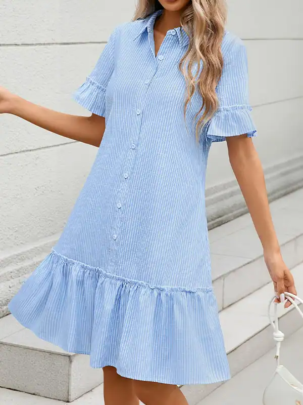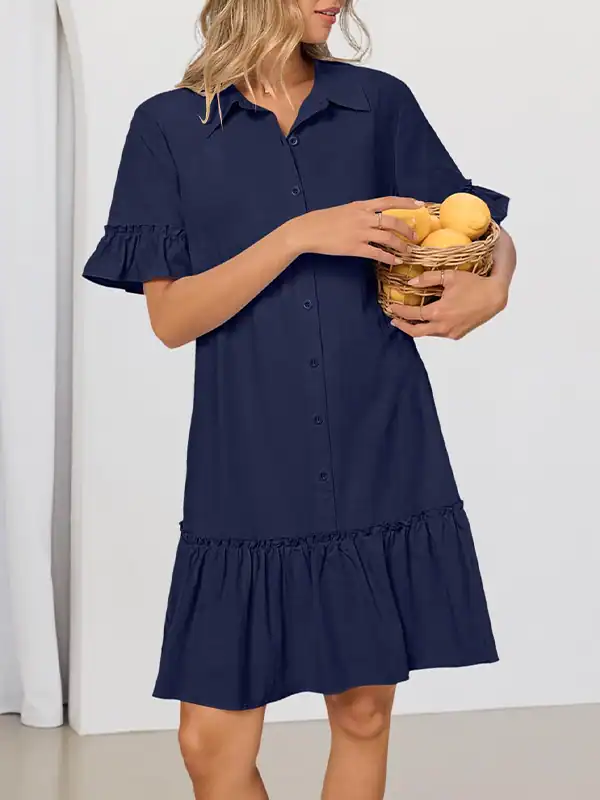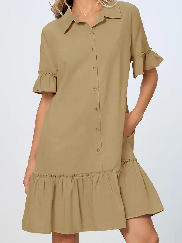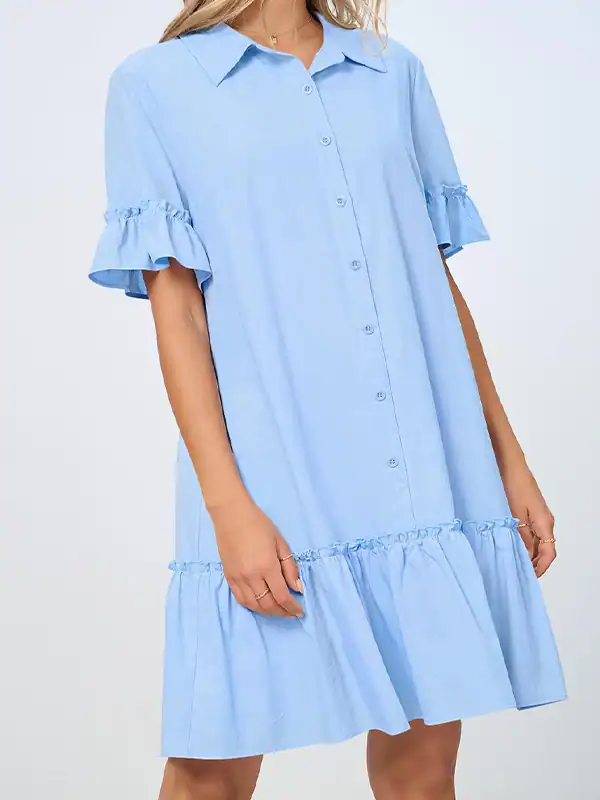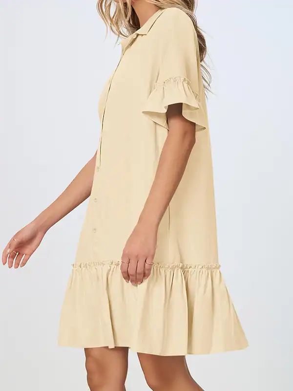 Custom Women’s Summer Button Down Shirt Dresses Manufacturer | OEM/ODM Casual Ruffle Sleeve Shift Mini Dress Supplier