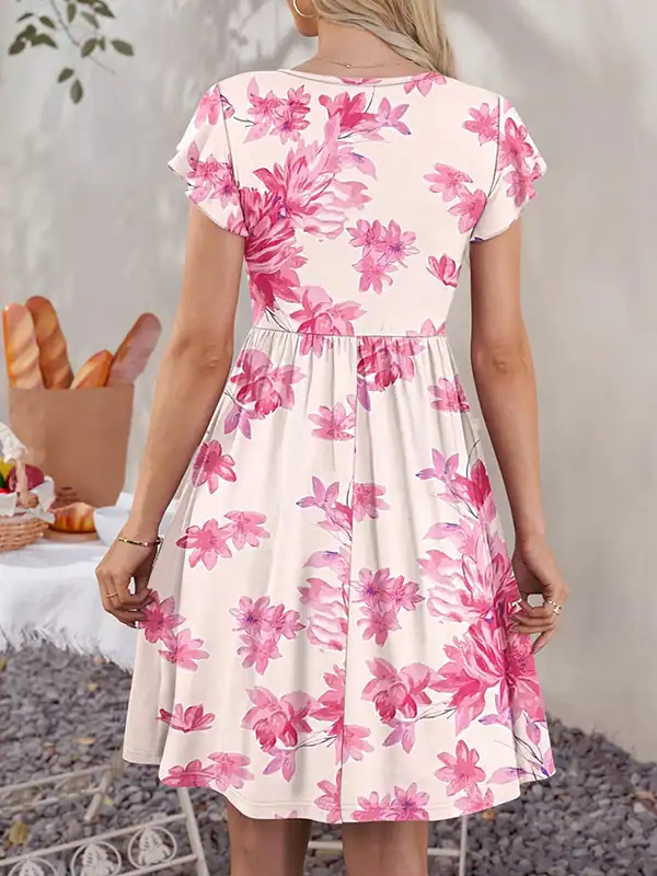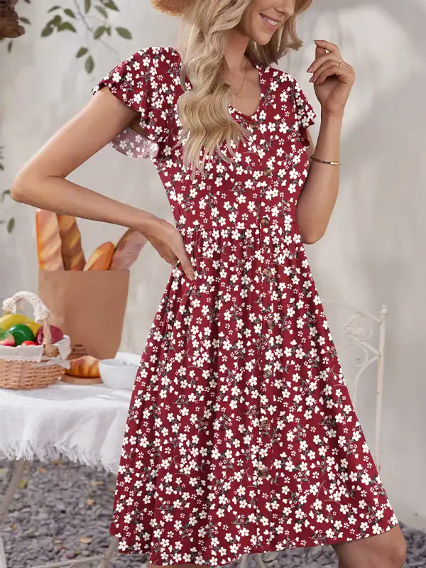 Design: Sleeveless/Square Neck/Short Sleeve options available; flowy A-line silhouette with bohemian floral patterns