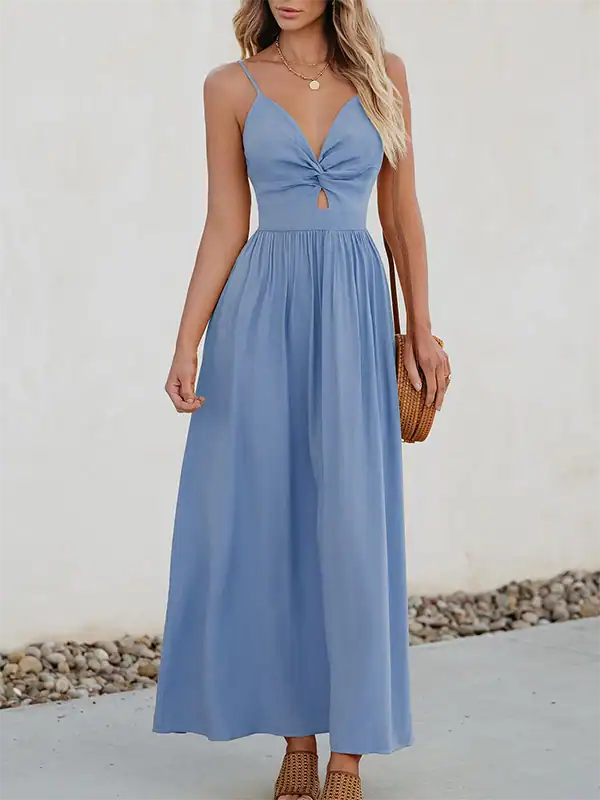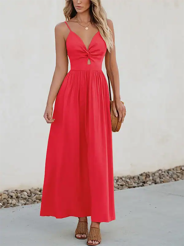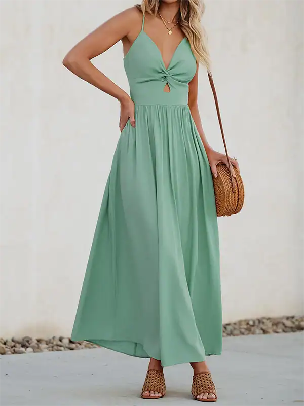 Custom Women's Summer Maxi Dress Manufacturer – Sleeveless, V Neck, Cutout, Spaghetti Strap, Beach & Formal