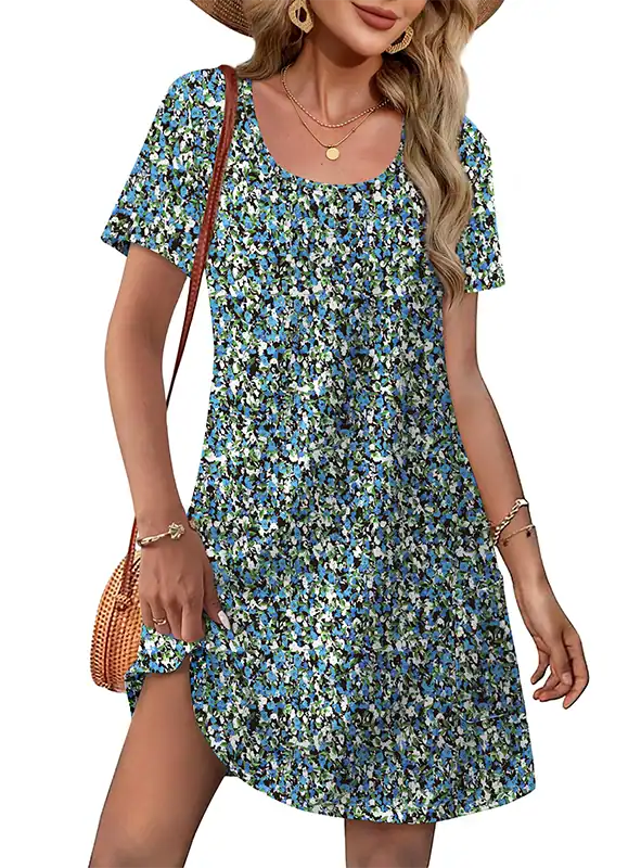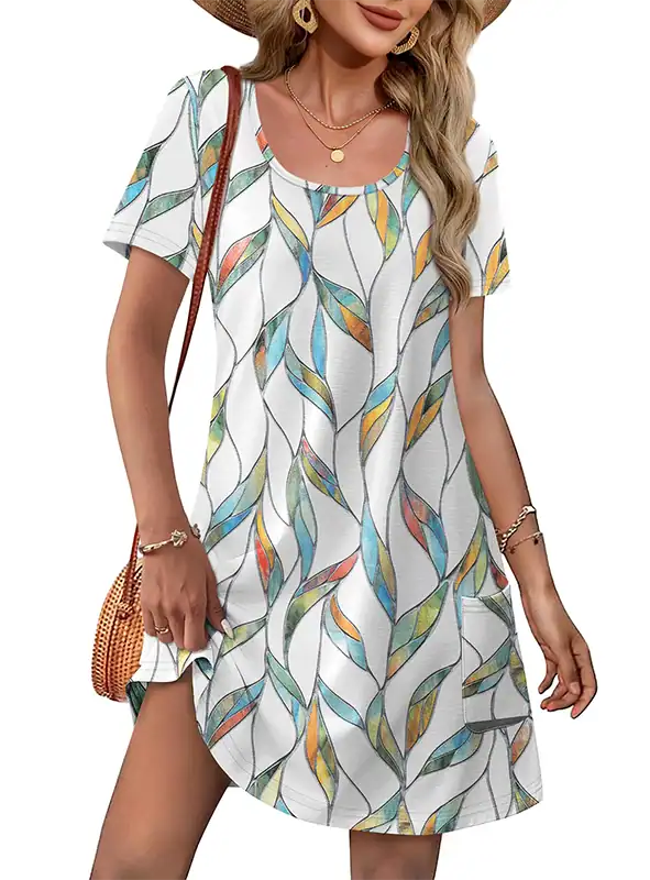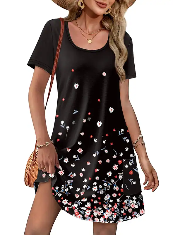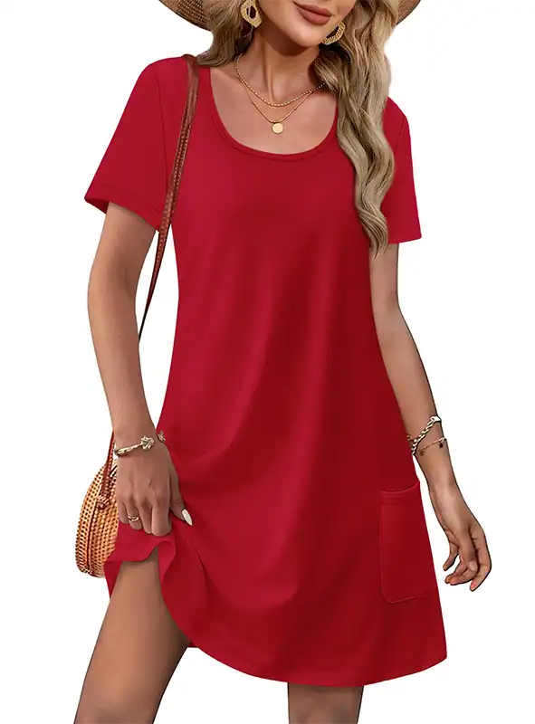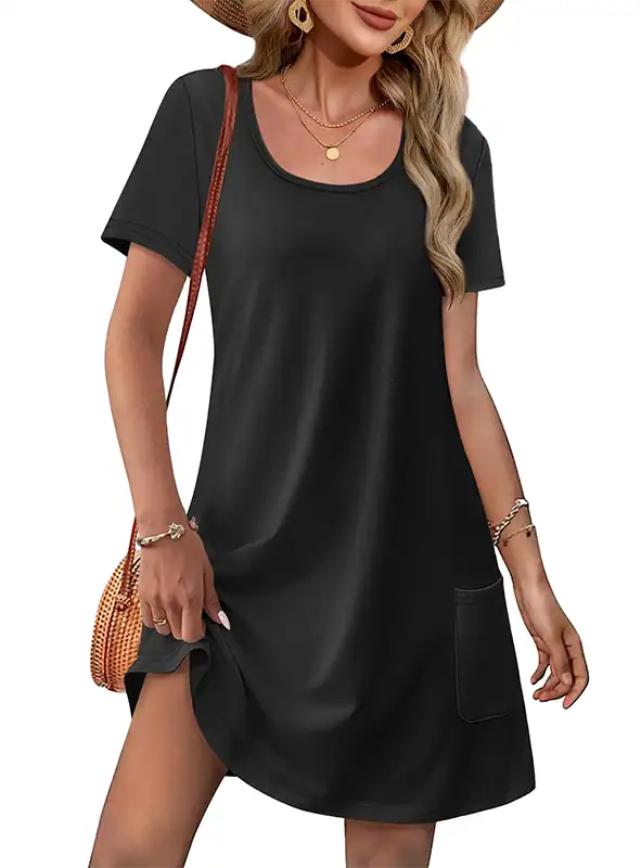 Style: Short sleeve, U-neck, knee-length, loose T-shirt dress