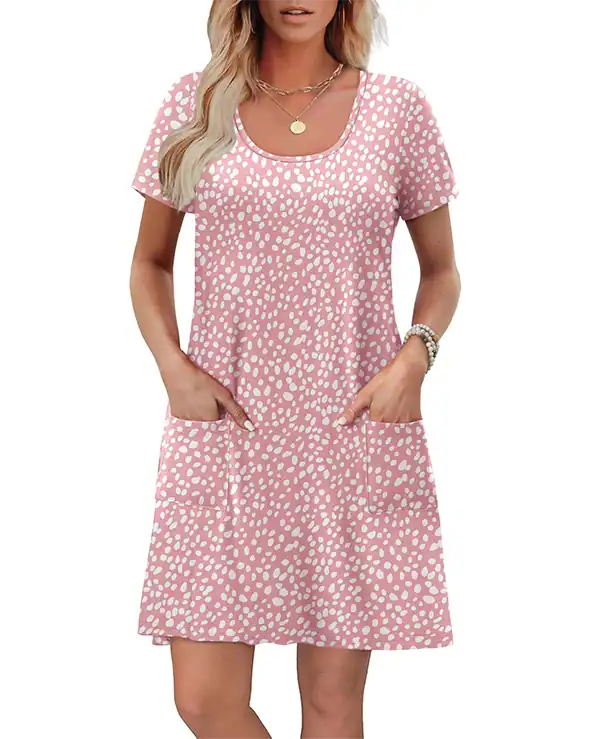 We manufacture women’s loose U-neck short sleeve T-shirt dresses designed for comfort, versatility, and style. Crafted from skin-friendly, ultra-soft, stretchy, and breathable fabric, the dress is shrink-resistant and suitable for all-day wear. Its relaxed loose-fit design accommodates all body types, while functional side pockets add practicality for casual and resort collections.