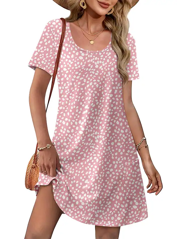Style: Short sleeve, U-neck, knee-length, loose T-shirt dress