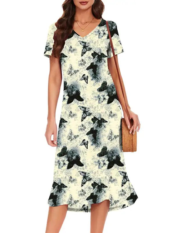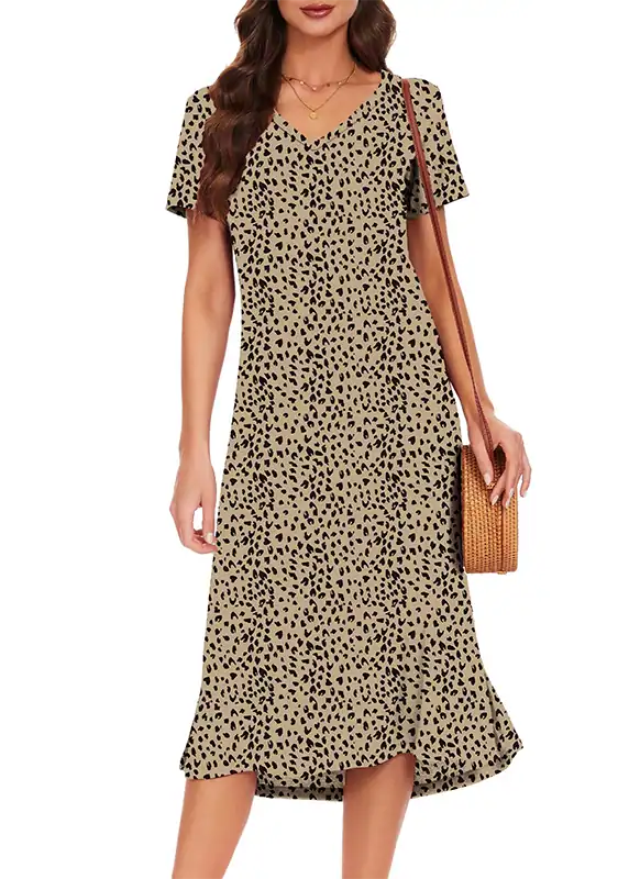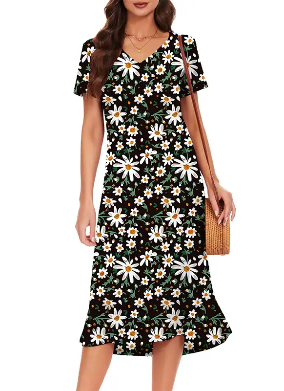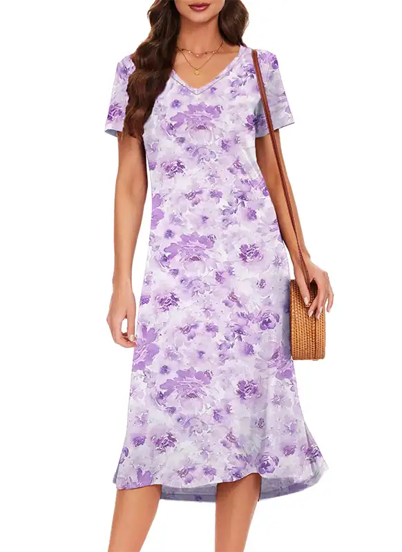 We manufacture women’s summer loose T-shirt dresses featuring a V-neck and side split for a relaxed, flowy silhouette. Crafted from ultra-soft, breathable, and stretchy fabrics—Solid: 95% Rayon, 5% Spandex; Floral: 95% Polyester, 5% Spandex—these dresses provide comfort in hot summer conditions while maintaining durability. Lightweight and airy, they are ideal for casual, resort, and vacation collections.