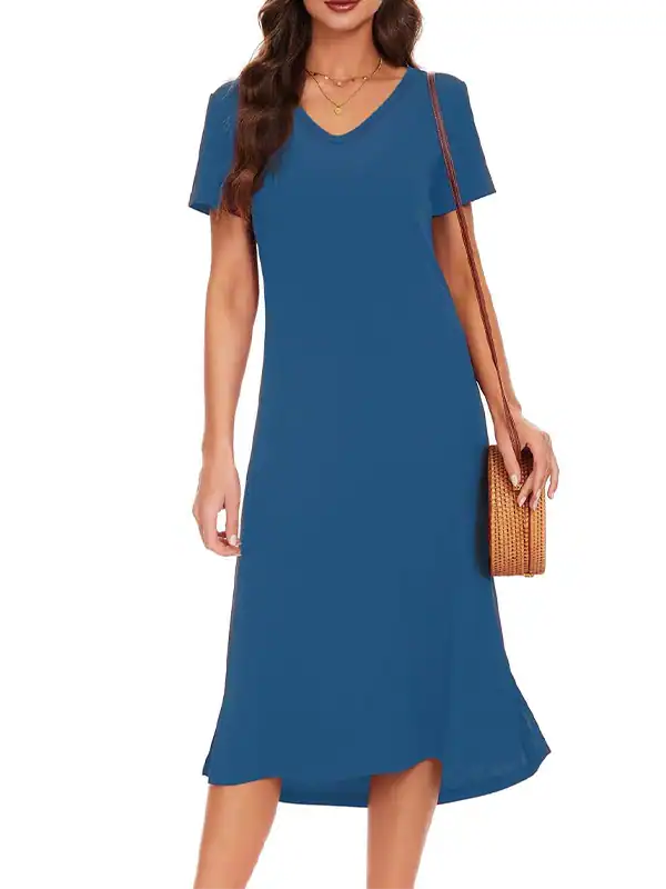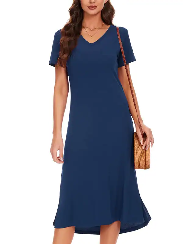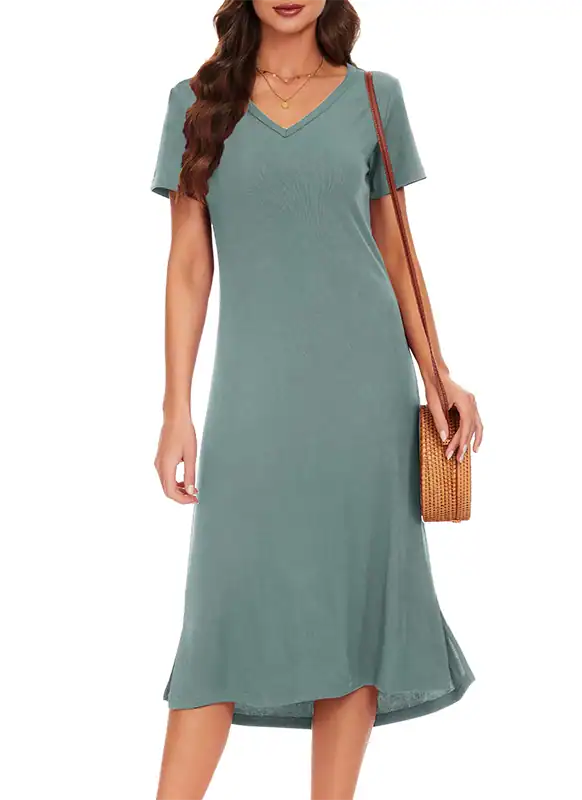 OEM & Wholesale Women’s Summer Casual T-Shirt Dress | Loose V-Neck Short Sleeve Side Split Dress Manufacturer