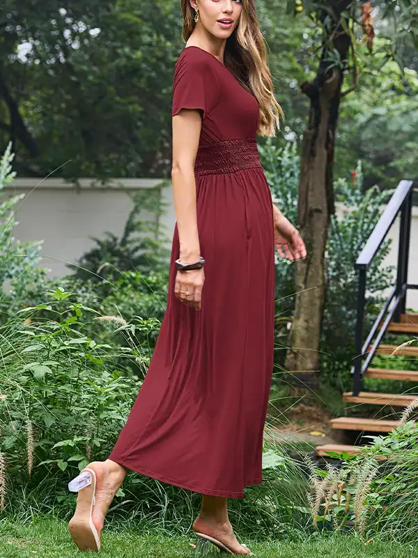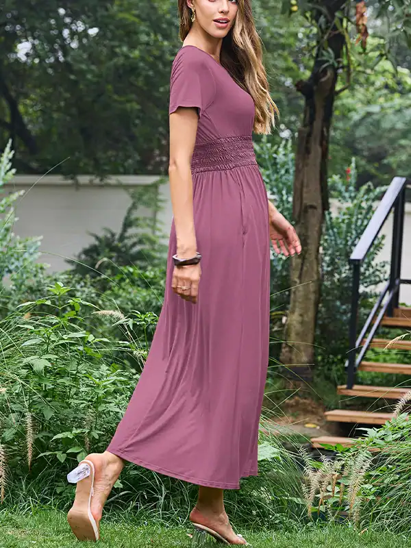 OEM Women's Summer Maxi Dress – Smocked Design, Short Sleeve, Custom Colors & Sizes