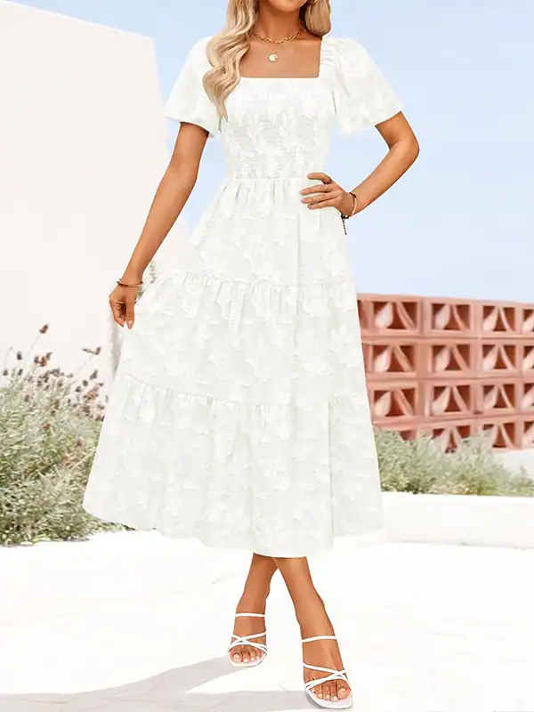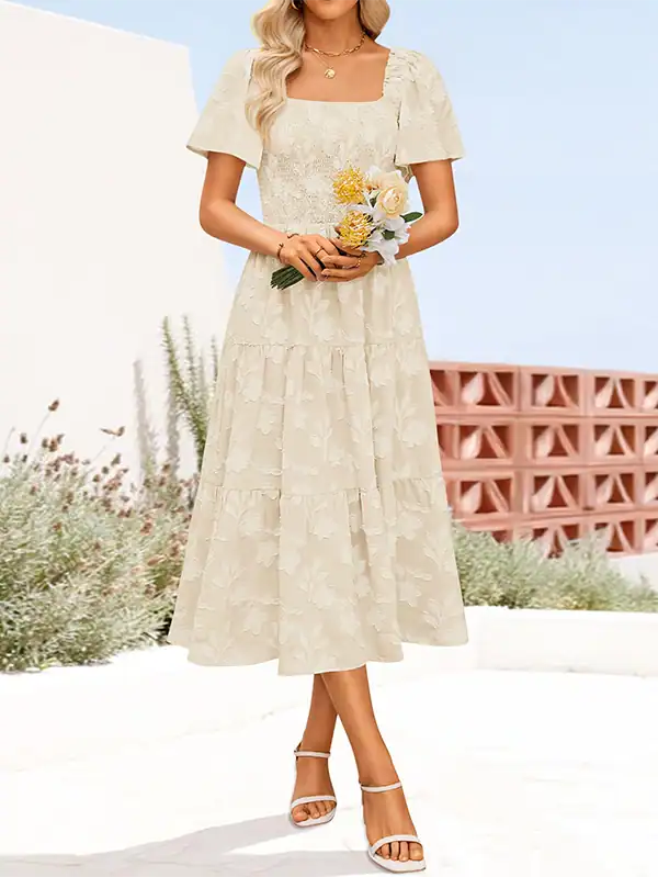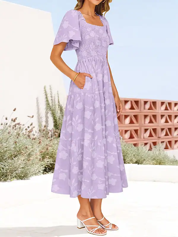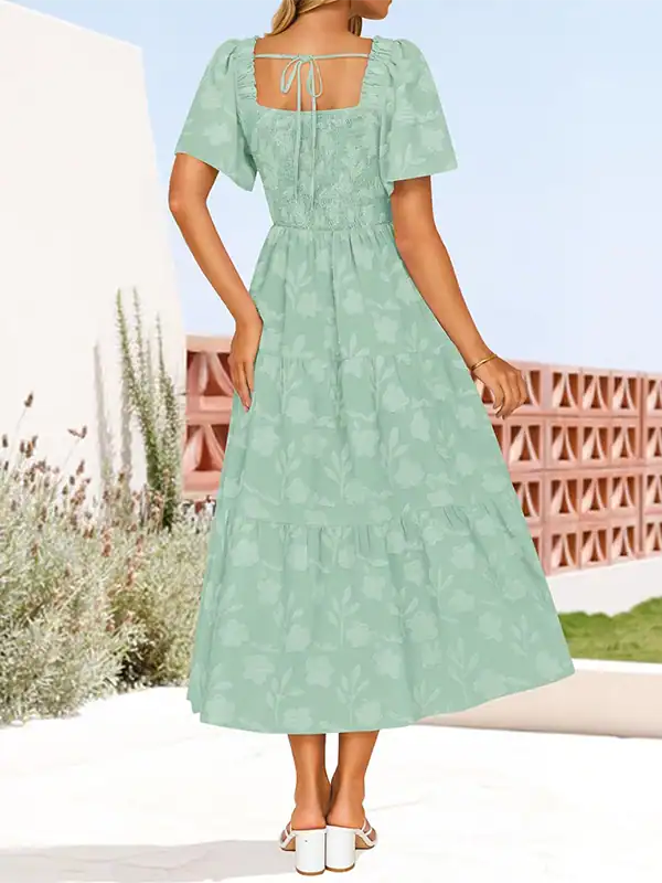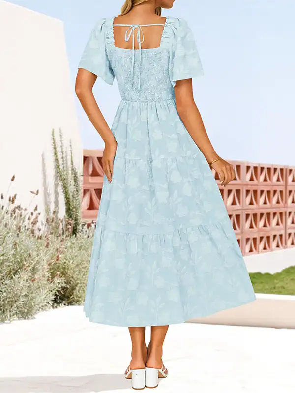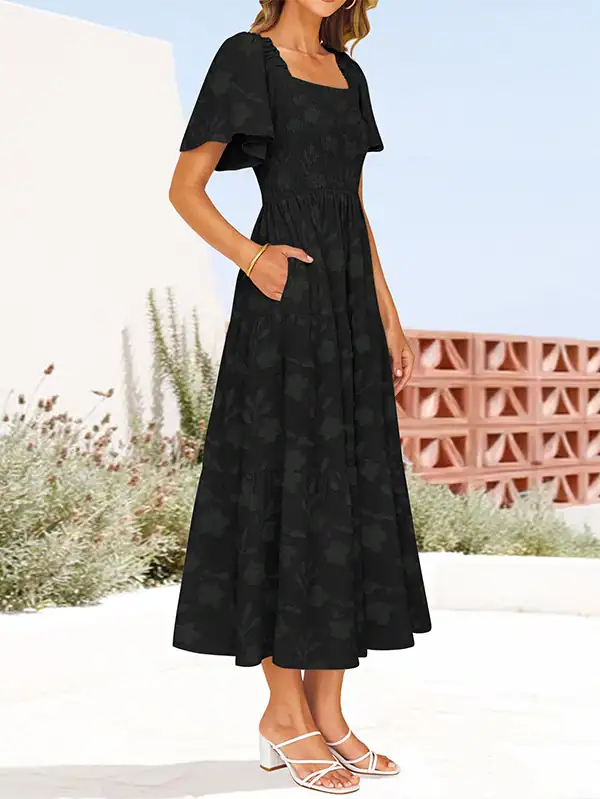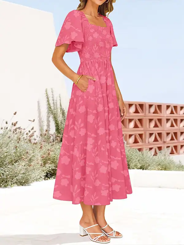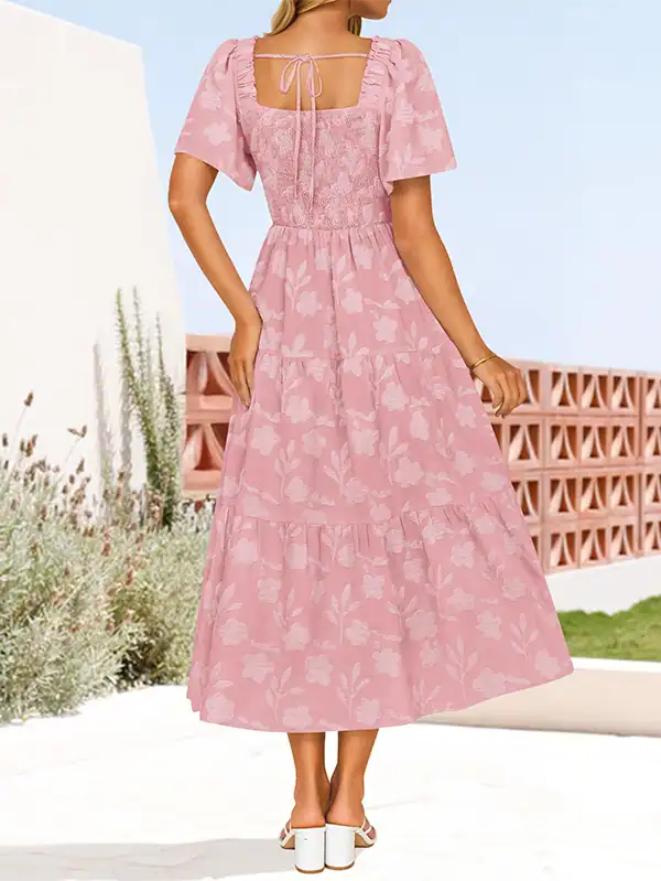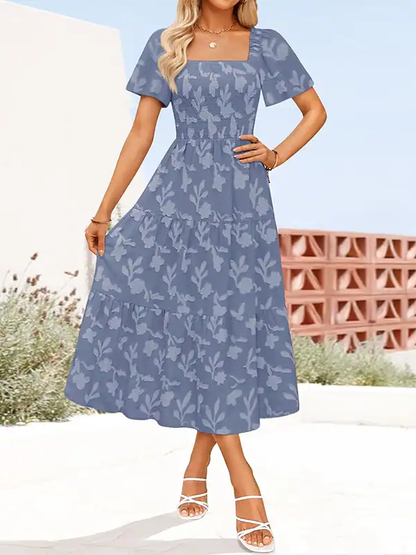 Private Label Women’s Floral Summer Midi Dress | Flowy Square Neck Short Sleeve Dresses – Custom Manufacturing