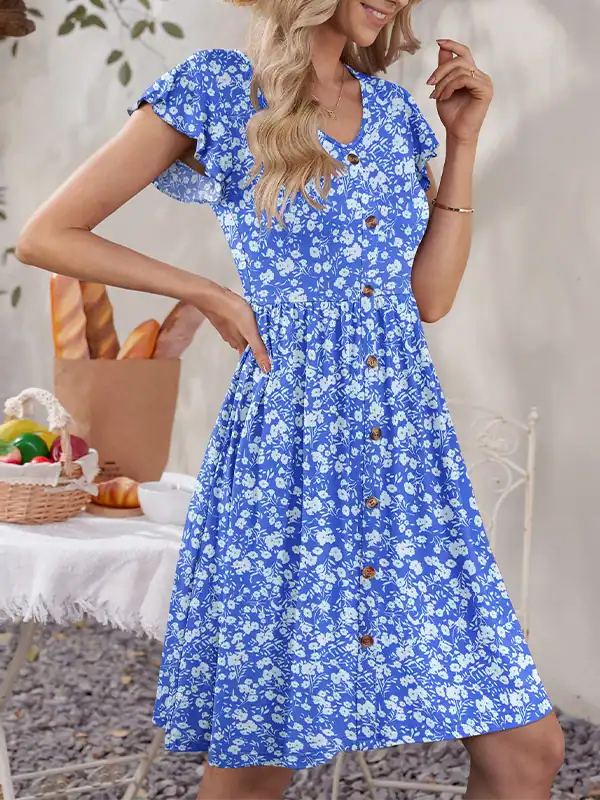 Design: Sleeveless/Square Neck/Short Sleeve options available; flowy A-line silhouette with bohemian floral patterns