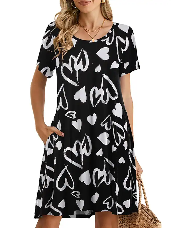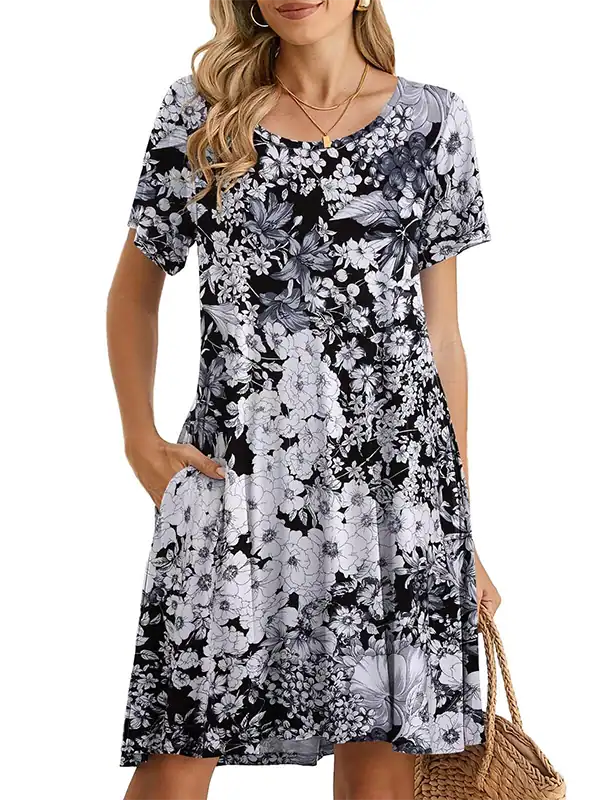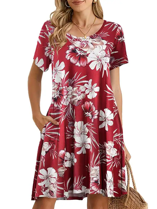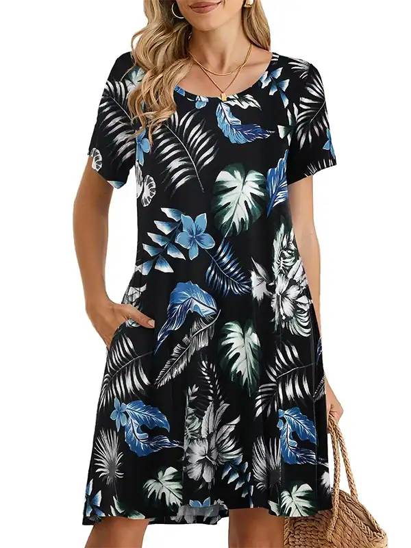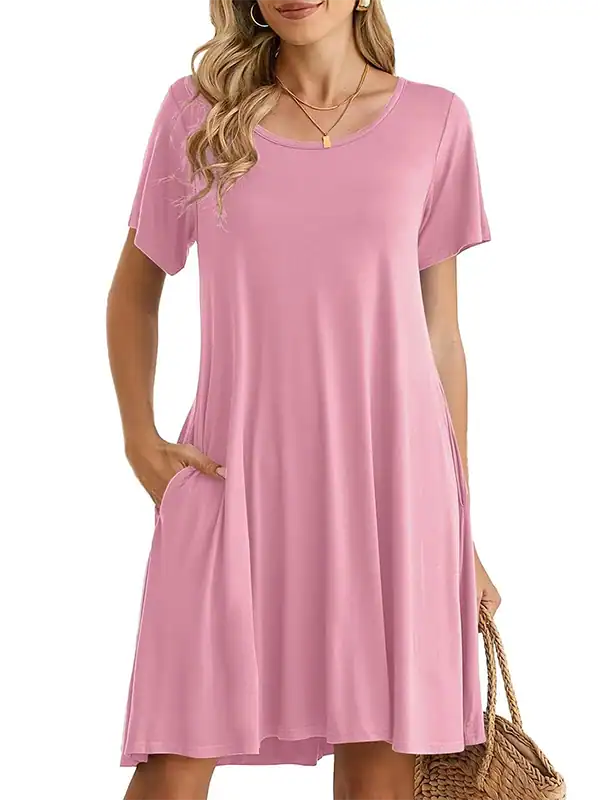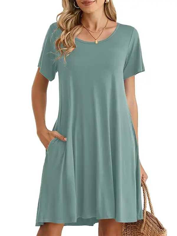 Style: Short sleeve, O-neck, midi length, loose swing tunic dress