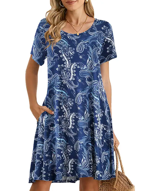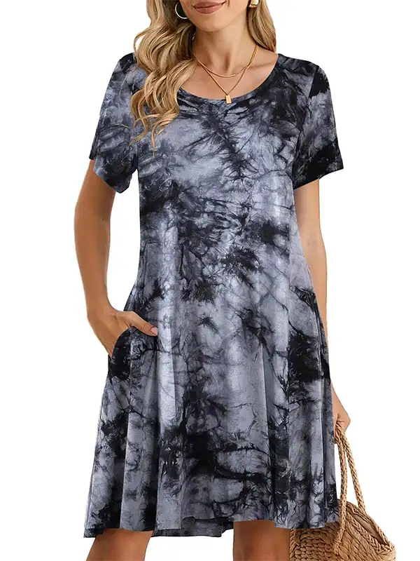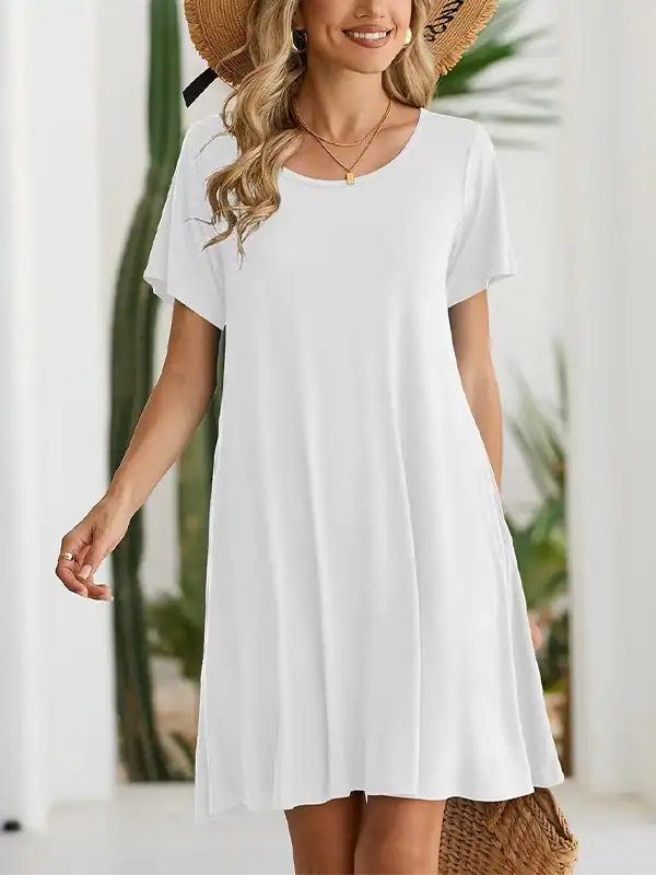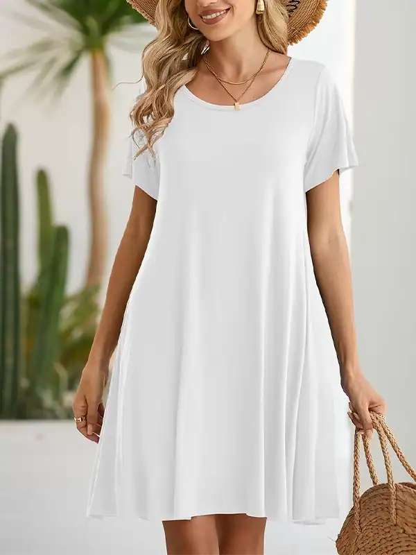 Style: Short sleeve, O-neck, midi length, loose swing tunic dress