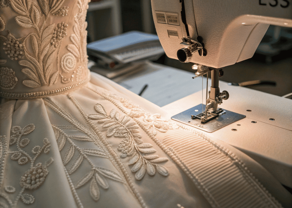 - Secure embellishment application (beads, embroidery, lace) — see: Dress Craft Details